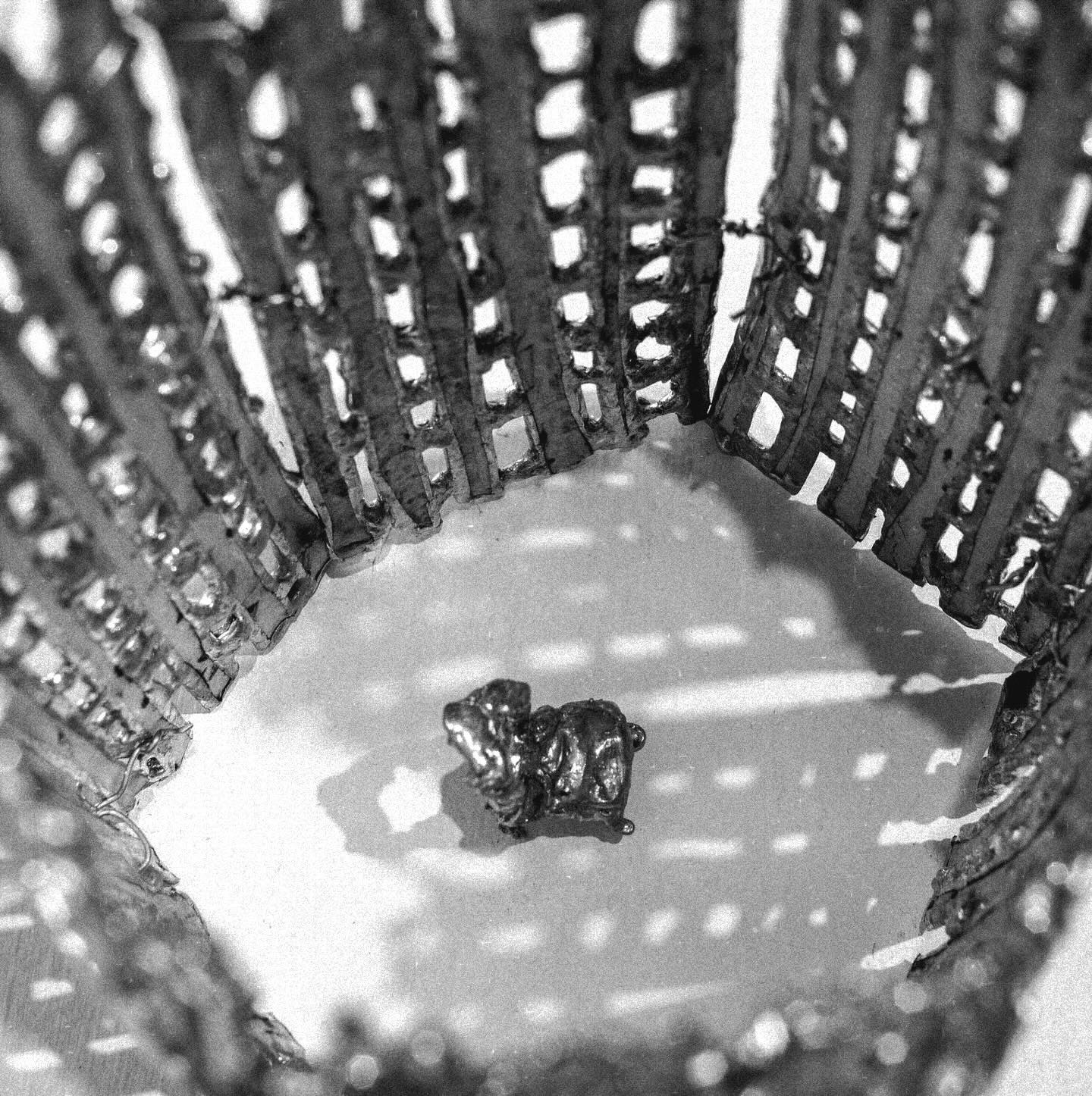 Tiges de renouée japonaise, étain, cuivre, 21 x 25 x 25 cm